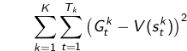 式中,k表示的是Episode序号, K为总的Episode数量,t为一个Episode内状态序号(第1,2,3...个状态等),表示的是第 k个Episode总的状态数,