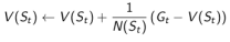 这个公式比较简单。把这个方法应用于蒙特卡洛策略评估,就得到下面的蒙特卡洛累进更新。
