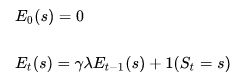 给每一个状态引入一个数值:效用追踪(Eligibility Traces, ES,也有翻译成“资质追踪”,这是同一个概念从两个不同的角度理解得到的不同翻译),可以结合上述两个启发。定义: