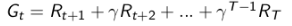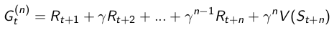 这张图还是比较好理解,例如对于n=3的3-步收获,赋予其在 收获中的权重如左侧阴影部分面积,对于终止状态的T-步收获,T以后的所有阴影部分面积。而所有节段面积之和为1。这种几何级数的设计也考虑了算法实现的计算方便性。