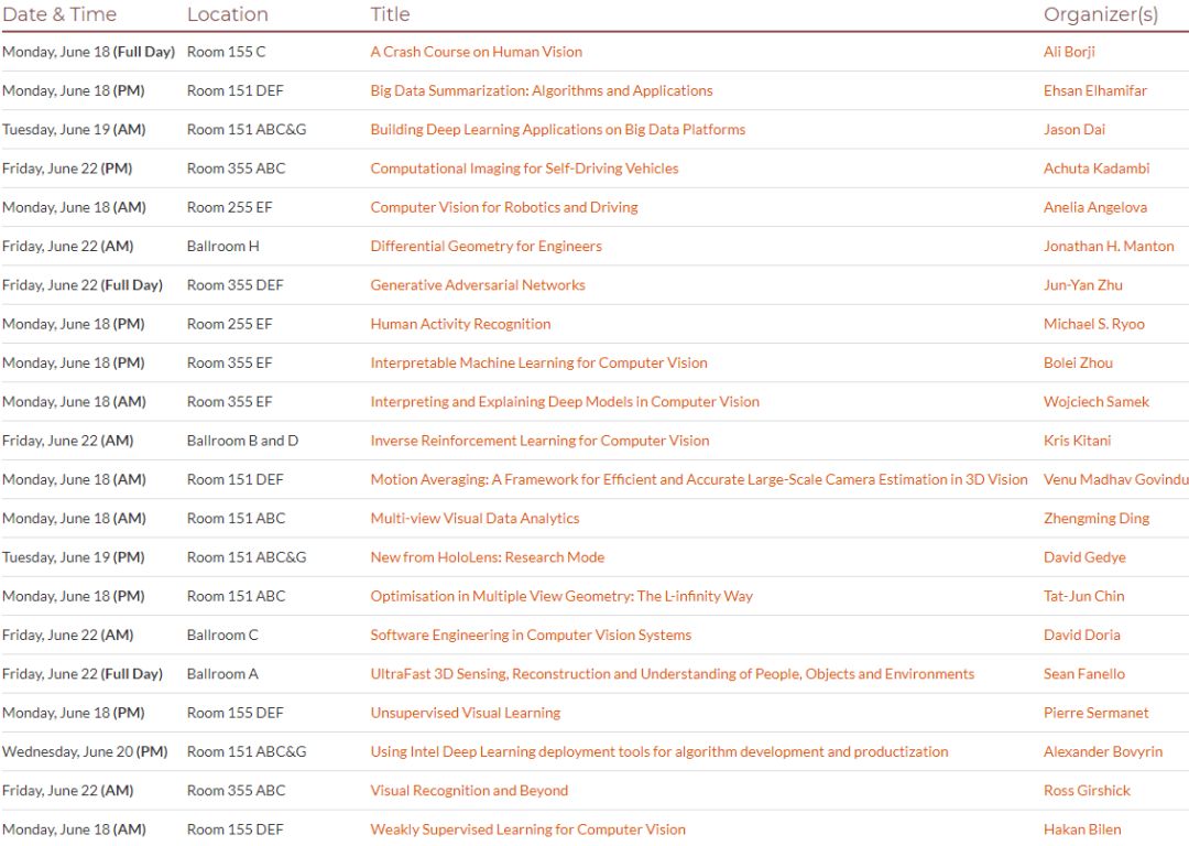 | Monday, June 18 (Full Day) | Room 155 C | A Crash Course on Human Vision | Ali Borji |