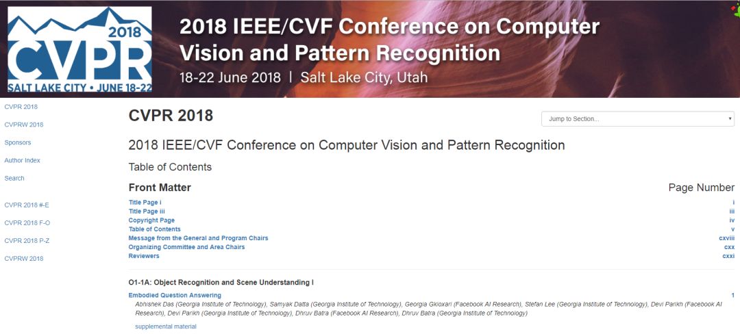 官网也放出了今年CVPR 2018 proceedings论文列表,大家可以下载查看。