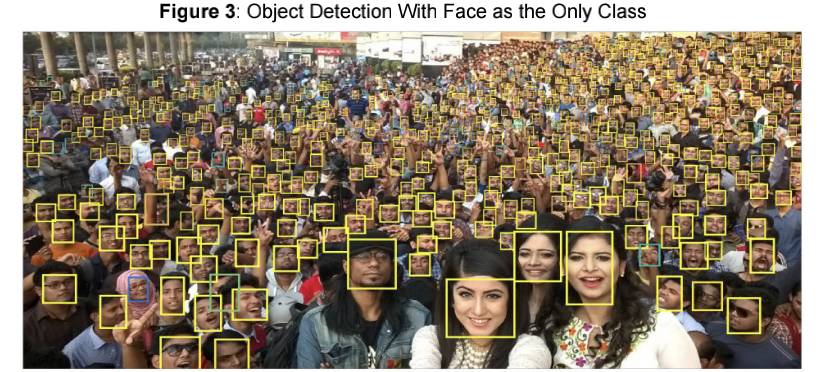 Note: Picture is an example of face detection, Object Detection of a single class. The authors cite one of the persistent issues in Object Detection to be the detection of small objects. Using small faces as a test class they explore the role of scale invariance, image resolution, and contextual reasoning.