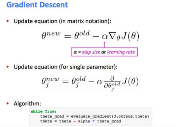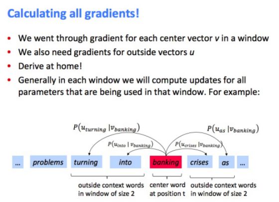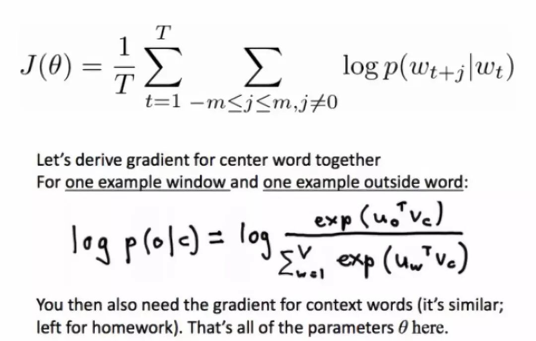 是表示模型所有参数的一个长向量。记住每个词都有两个向量,我们接下来要做的事就是优化这些参数。