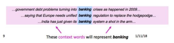核心思想:一个单词的意思是由经常出现在近旁的单词所给出的(A word’s meaning is given by the words that frequently appear close-by)。