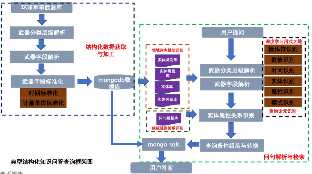 5. 军事知识图谱。基于mongodb存储的军事领域知识图谱问答项目,包括飞行器、太空装备等8大类,100余小类,共计5800项的军事武器知识库,该项目不使用图数据库进行存储,通过jieba进行问句解析,问句实体项识别,基于查询模板完成多类问题的查询,主要是提供一种工业界的问答思想。