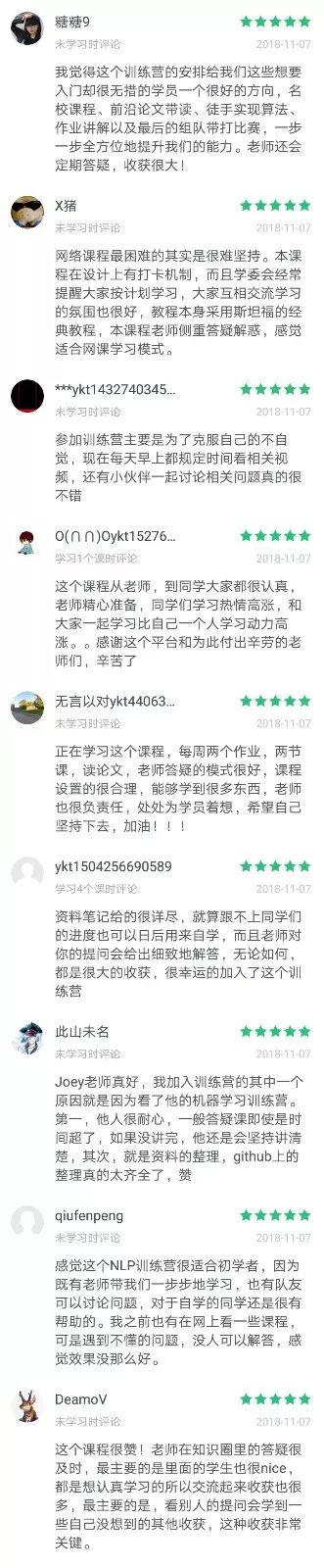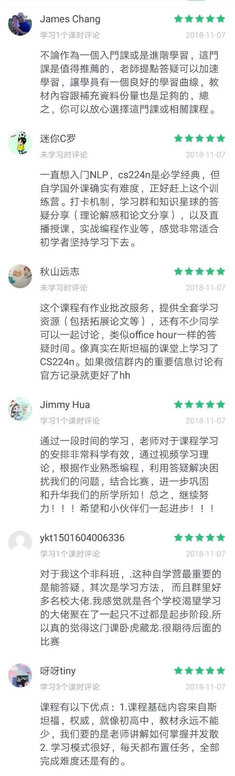 为此我们用了一个月时间,筛选和研究了市面上所有最具价值的学习资料,并让往期学员深入参与调研,最后选择了以斯坦福大学最权威的NLP课程CS224n作为带学教程,以李开复、搜狗CEO王小川和美团点评CTO联合创办的全球AI挑战赛—AI Challenger作为比赛实践,开设我们第一期《深度学习与自然语言处理》带学训练营。