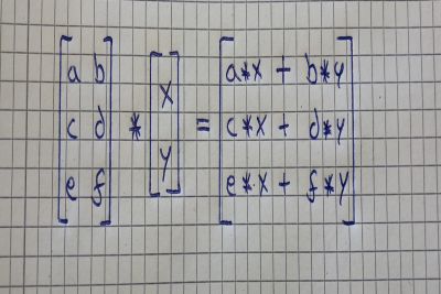 将第二个矩阵拆分为列向量,然后将第一个矩阵分别与这些向量中的每一个相乘。 然后你把结果放在一个新的矩阵中。 下面的图片逐步解释了这一点: