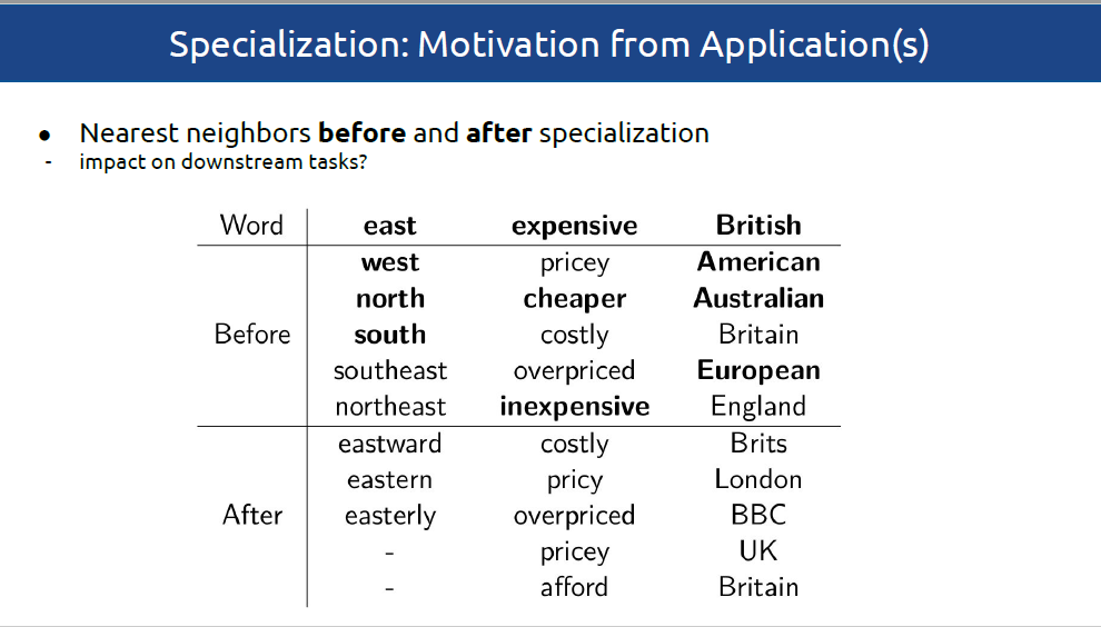 对于LE和其他关系的专门化方法:词义蕴含的专门化方法,在向量空间中嵌入层次结构等。(35min,Goran)