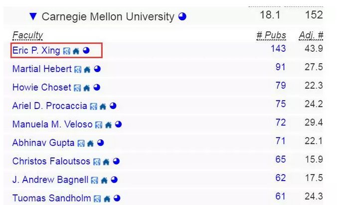 其中,邢波教授在卡内基梅隆教授计算机科学顶会论文排名高居首位。