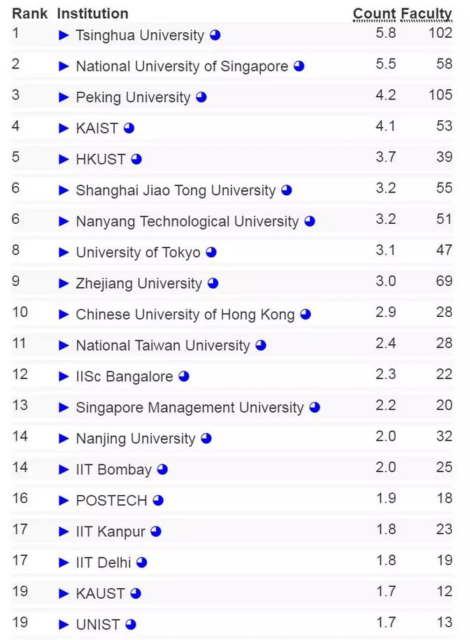 亚洲高校人工智能排名