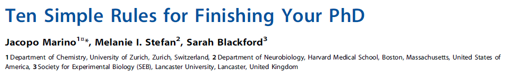 后台回复“SPHD” 就可以获取Ten Simple Rules for Finishing Your PhD下载链接~