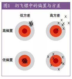 机器学习领域的每个人都了解过拟合,但过拟合会以多种并不明显的形式出现。一种理解过拟合的方式是将泛化误差(generalization error)分解为偏置(bias)和方差( variance)【9】。偏置度量了学习器倾向于一直学习相同错误的程度。方差则度量了学习器倾向于忽略真实信号、学习随机事物的程度。图 1用朝板子扔飞镖作为类比进行了直观说明。