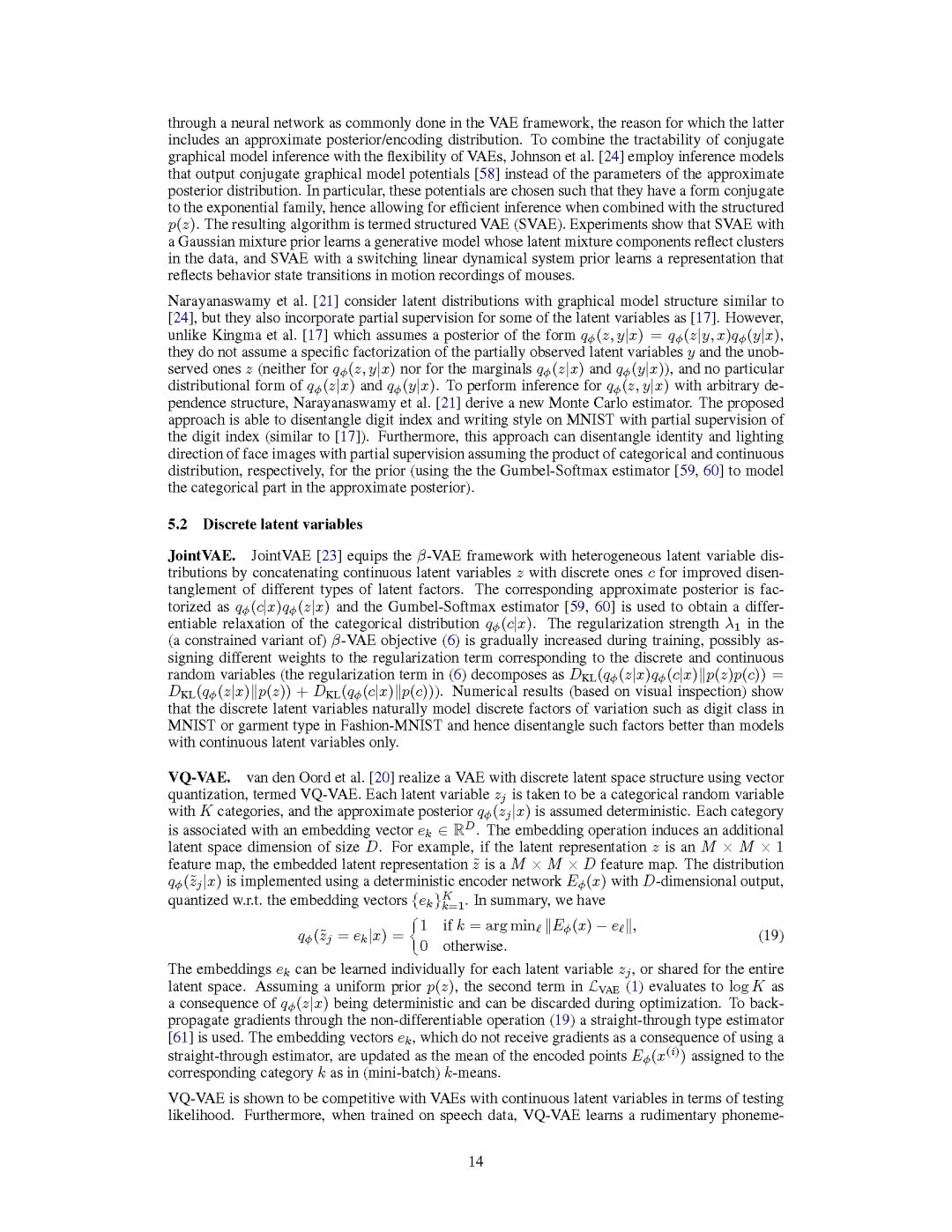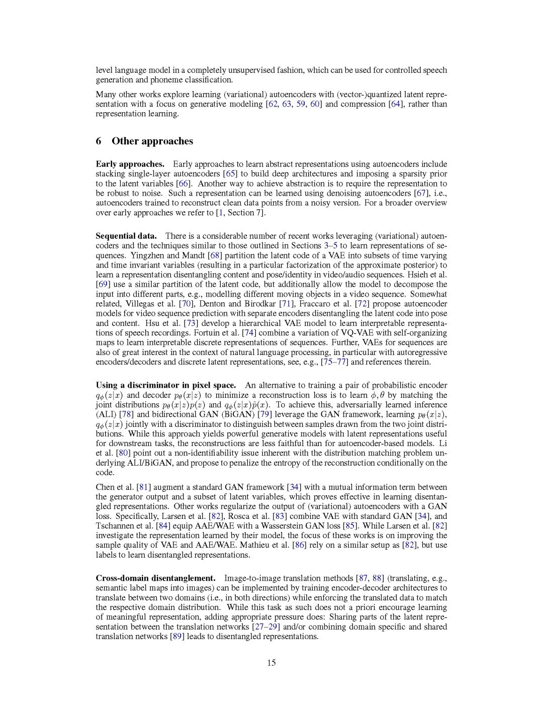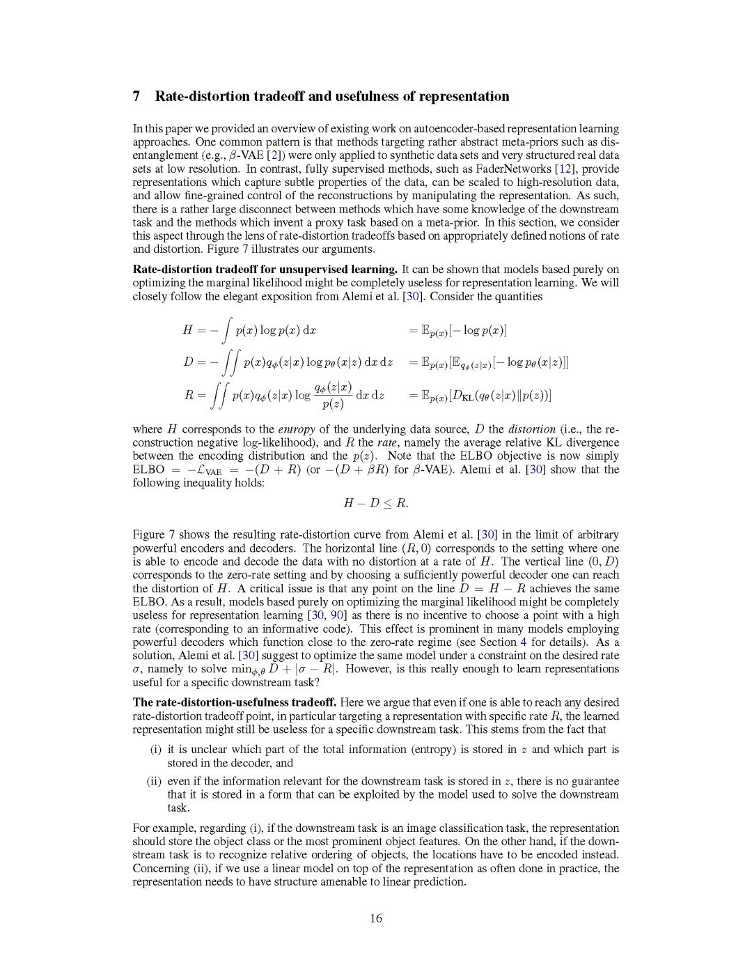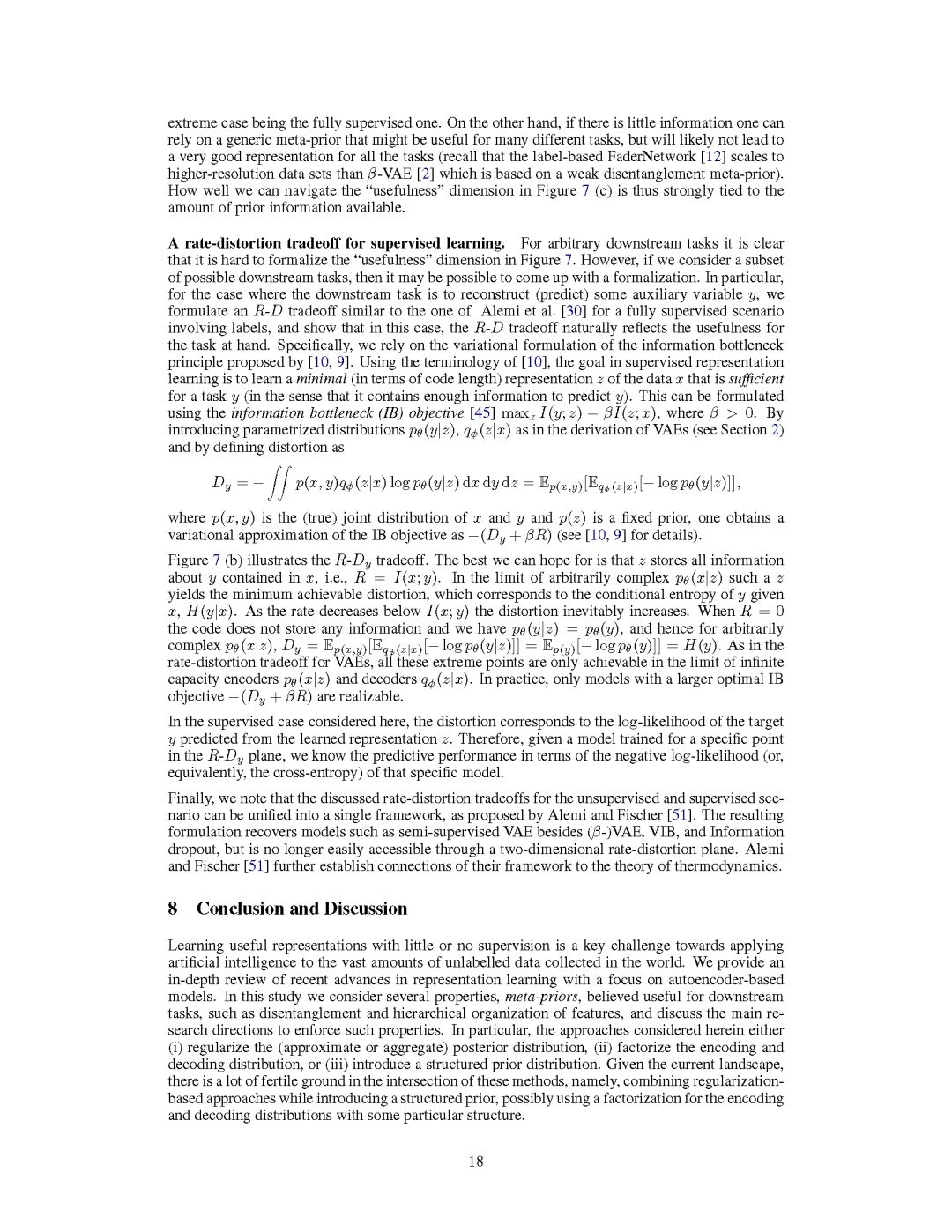 【摘要】在很少或者无监督的情况下学习有用的表示是人工智能的一个关键挑战。 我们对表示学习的最新进展进行了深入的回顾,重点是基于自编码的模型。为了组织这些,我们使用元先验(meta-priors),这些元先验被认为对下游任务有用,例如特征的分离和分层组织。 特别地,我们揭示了这些属性的三种主要机制,即(i)正则化(近似或聚合)后验分布,(ii)分解编解码分布, (iii)引入结构化的先验分布。虽然有一些有希望的结果,但隐性或显性监督仍然是一个关键推动因素,所有现有方法都使用强inductive biases和建模假设。最后,我们利用速率失真理论分析了基于自编码的表示学习。
