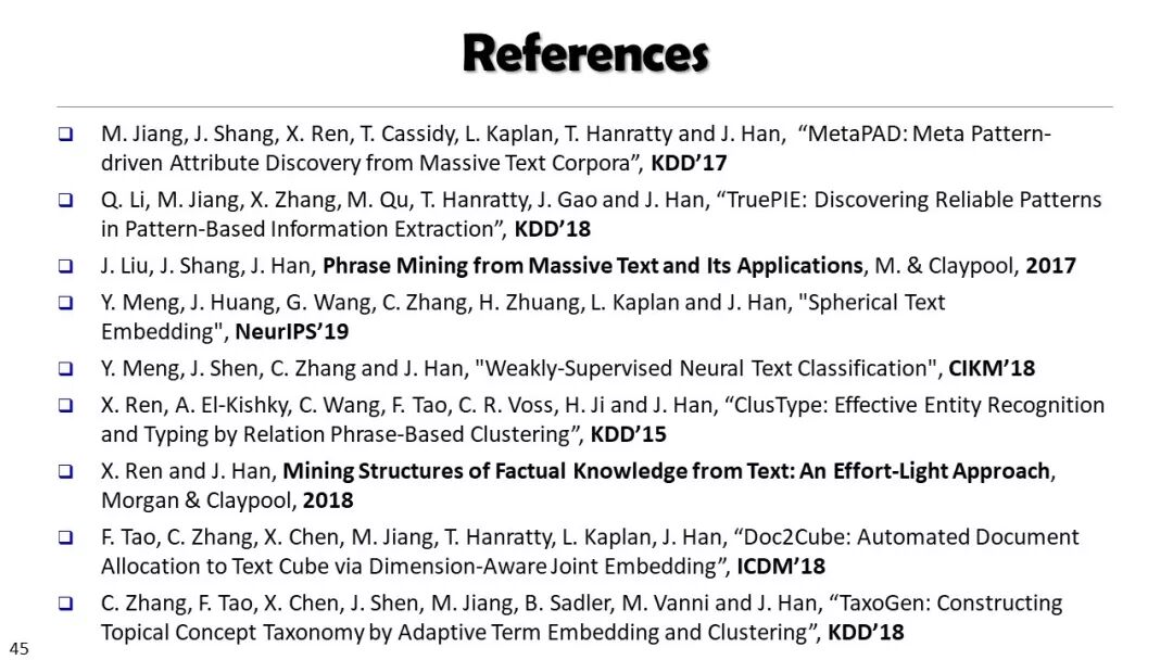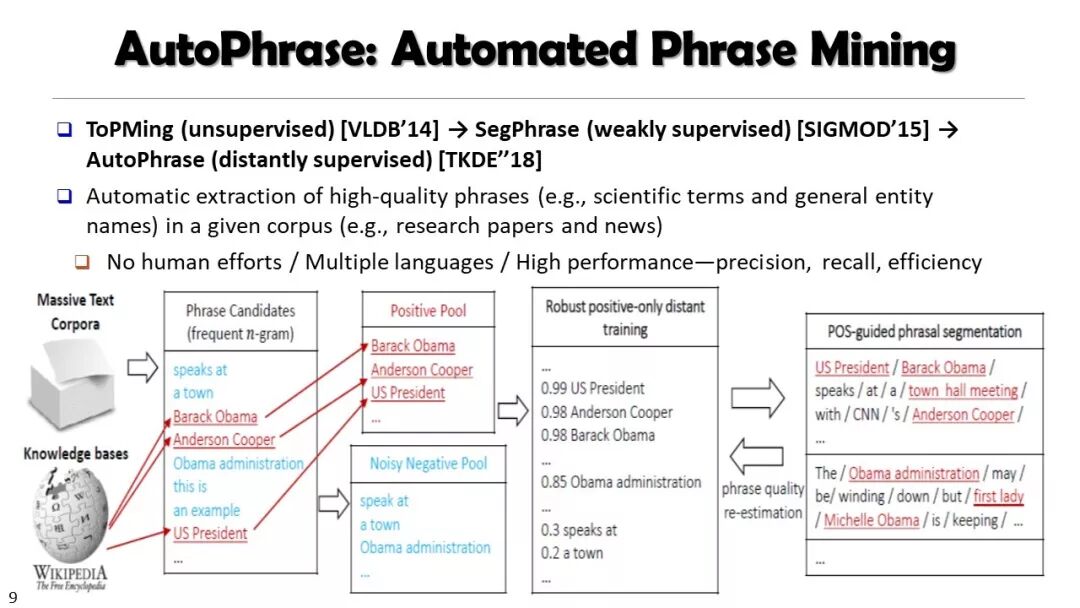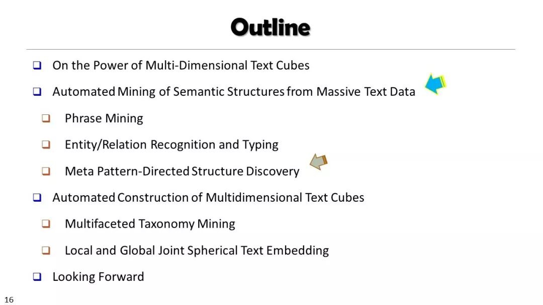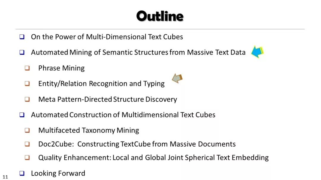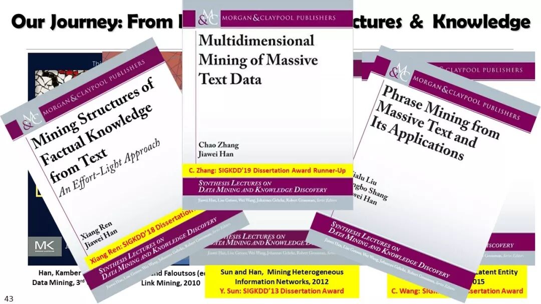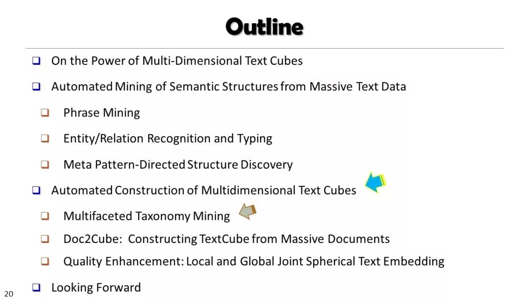 现实世界的大数据以自然语言文本的形式,在很大程度上是非结构化的、相互关联的、动态的。将如此庞大的非结构化数据转换为结构化知识是非常必要的。许多研究人员依赖于劳动密集型的标记和管理来从这些数据中提取知识,这可能是不可扩展的,特别是考虑到许多文本语料库是高度动态的和特定于域的。我们认为,大量的文本数据本身可能揭示了大量隐藏的模式、结构和知识。基于领域无关和领域相关的知识库,我们探索海量数据本身将非结构化数据转化为结构化知识的能力。通过将大量的文本文档组织成多维文本数据集,可以有效地提取和使用结构化的知识。在这次演讲中,我们介绍了一组最近开发的用于这种探索的方法,包括挖掘质量短语、实体识别和键入、多面分类构造以及多维文本立方体的构造和探索。结果表明,数据驱动方法是将海量文本数据转化为结构化知识的一个有前途的方向。