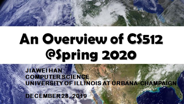 【导读】韩家炜老师是数据挖掘领域的祖师爷,也是华人计算机界的代表性人物之一。最近他在UIUC美国伊利诺伊大学香槟分校新开设一门课程CS512 Spring 2020关于数据挖掘《Data Mining: Principles and Algorithms》,介绍数据挖掘的原理、算法和应用,包括算法、方法、实现和应用。课程内容包括:网络概论、信息网络挖掘、序列与图数据挖掘、先进的聚类方法、离群点分析方法、数据流挖掘、时空数据挖掘、文本数据挖掘、Web数据挖掘等。值得关注学习。