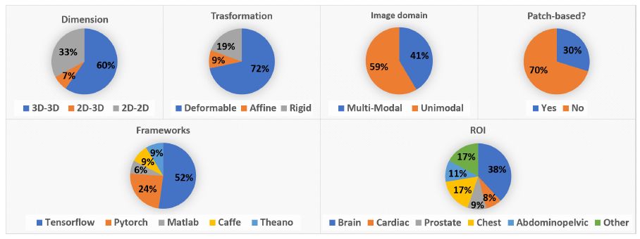 图4. 基于深度学习的图像配准方法各属性的百分比饼图。