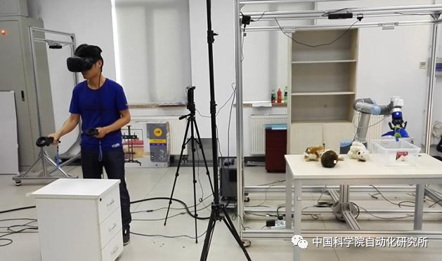 基于虚拟现实的机器人遥操作系统,包括虚拟现实设备、控制器及机器人。近端操作人员通过该系统可完成机器人远程遥操作任务。该机器人遥操作系统可广泛应用于现代工厂、海底探测以及外太空探索等领域。