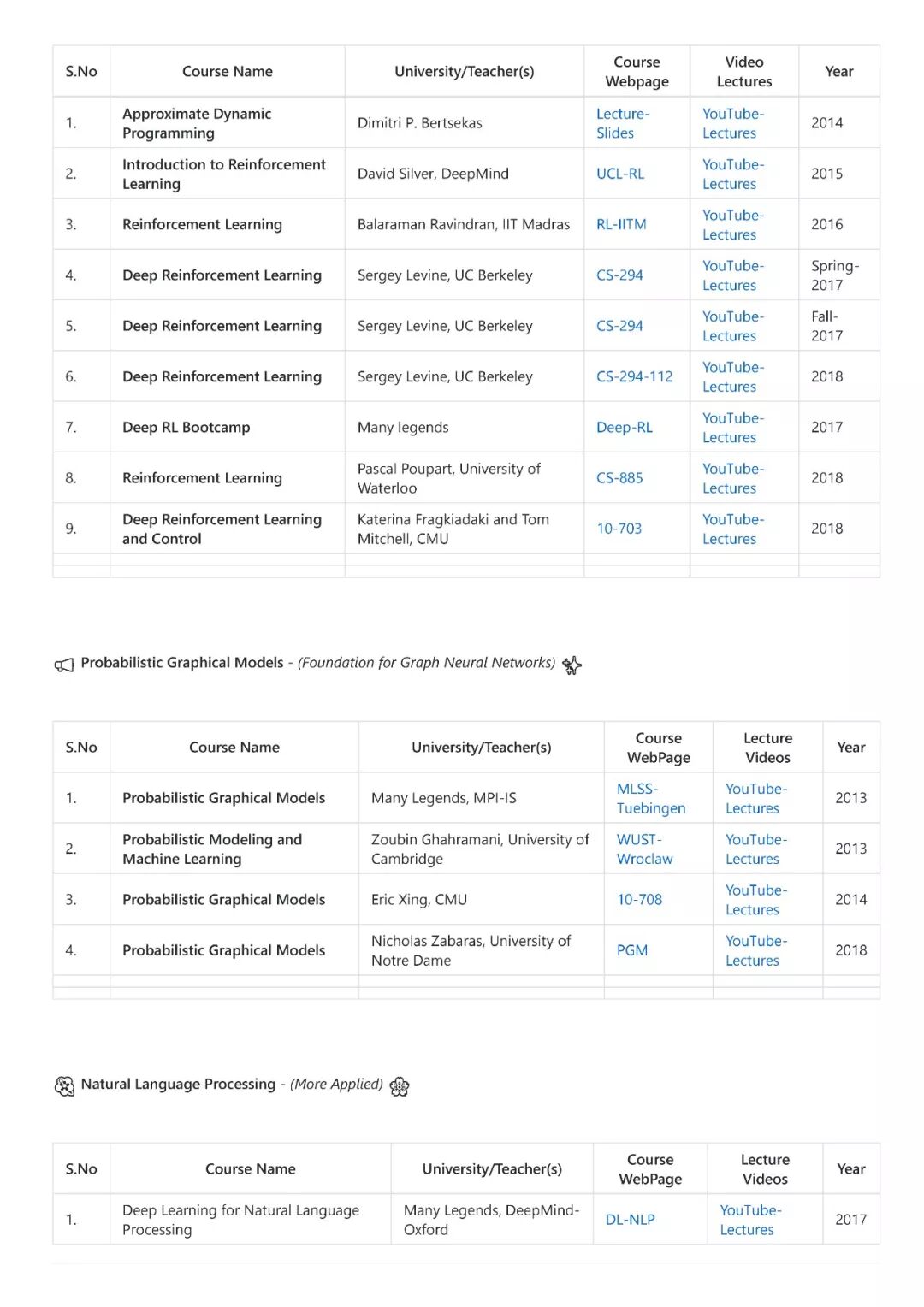 【导读】kmario23在Github维护了关于深度学习、强化学习、一般机器学习、概率图模型、自然语言处理、计算机视觉等关于国内外非常经典知名的课程,总共50多门,非常值得收藏!