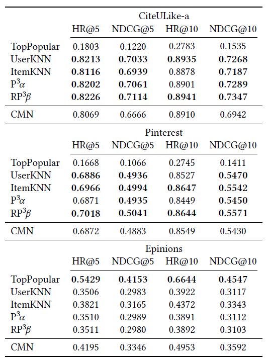 CMN方法是在SIGIR ' 18上提出的,将记忆网络和神经注意力机制与潜在因素和邻域模型[10]相结合。