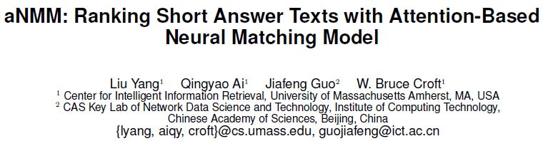 论文: aNMM: Ranking Short Answer Texts with Attention-Based Neural Matching Model