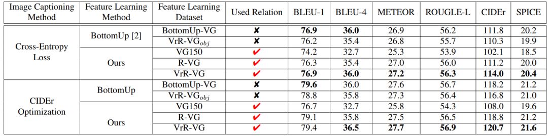 在看图说话的任务中,通过学习视觉相关关系,任务的性能也有提升。