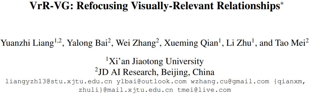 论文链接:http://openaccess.thecvf.com/content_ICCV_2019/papers/Liang_VrR-VG_Refocusing_Visually-Relevant_Relationships_ICCV_2019_paper.pdf