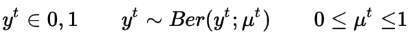 这次我们使用sigmoid函数将线性模型的输出映射到(0,1)的范围,因为伯努利的均值应该在这个范围内。