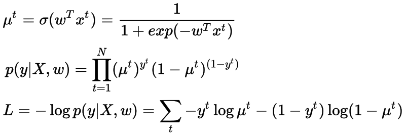 上面定义的损失函数被称为交叉熵损失函数,在分类问题中被广泛使用,我们在统计上显示了我们使用它的原因。解决方案没有封闭的表单,我们将使用随机梯度下降(每次更新取一个样本来计算梯度),并提供在线迭代更新机制。