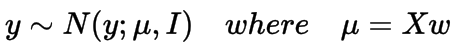 在开始时,我们说输出是一个实数值。实际上,我们假设输出是从正态分布中采样得到的,可以通过设置其是以均值为Xw和方差为I(单位方差)的正态分布,如下所示,