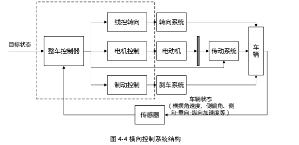 车辆横向控制指垂直于运动方向上的控制,对于汽车也就是转向控制。目标是控制汽车自动保持期望的行车路线,并在不同的车速、载荷、风阻、路况下有很好的乘坐舒适性和稳定性。