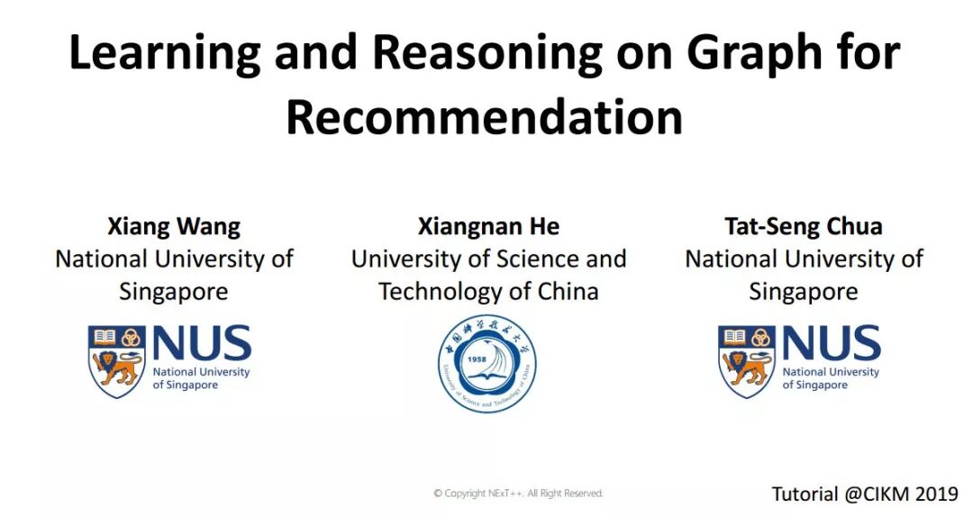 新加坡国立大学三位学者在国际会议CIKM2019上完成题为“Learning and Reasoning on Graph for Recommendation”的大会报告。在本教程中,作者将从图学习的角度重新讨论推荐问题。随着最近图神经网络(GNNs)的成功,基于图的模型显示出其作为下一代推荐系统的技术潜力。本教程提供了基于图学习的回顾。