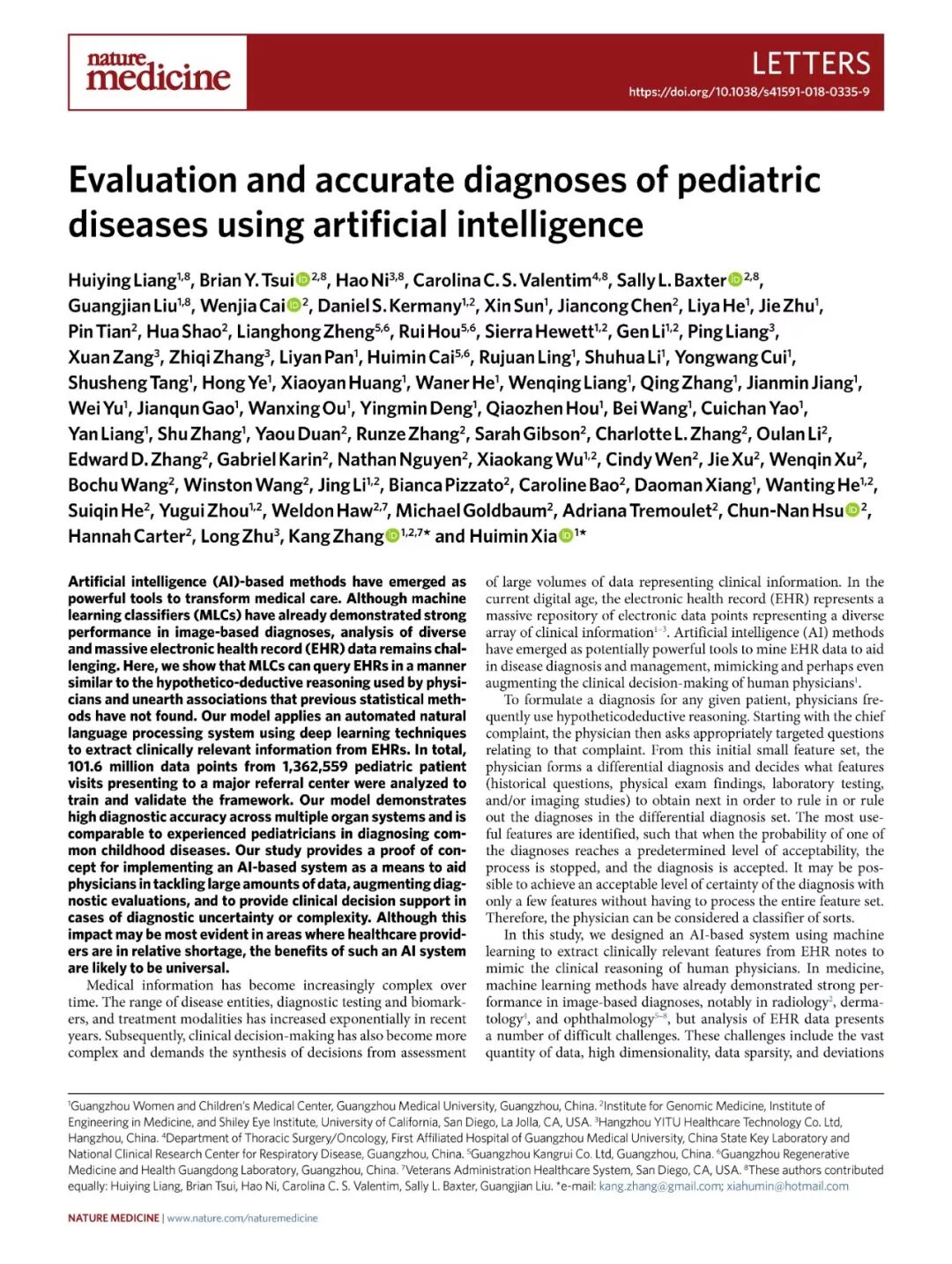 人工智能系统和医疗团队在儿科疾病诊断水平的比较
