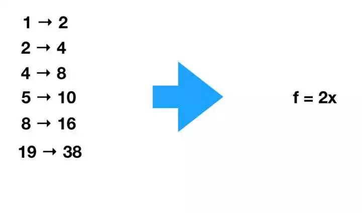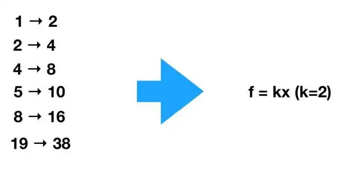 像上面的表,就可以很简单的由一个正比例函数表示,这是一个极端情况,我们把数据量压缩到了0。
