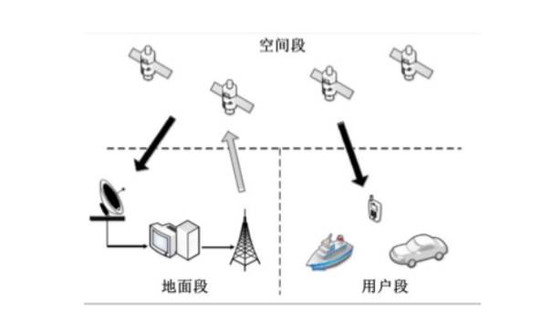 卫星导航系统都由空间段(导航卫星)、地面段(地面观测站) 和用户段(信号接收机)三个独立部分组成,如图 2-5 所示。卫星导 航的基本原理是测量已知位置的卫星到用户接收机之间的距离,并综 合多颗卫星的数据计算出用户所在地理位置信息。
