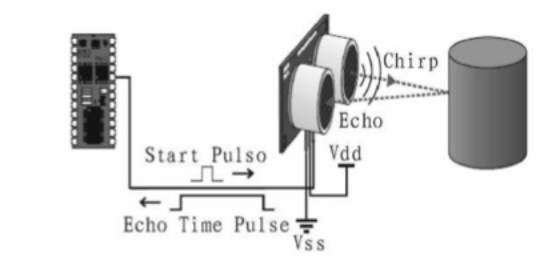 超声波雷达工作在机械波波段,工作频率在 20KHz 以上。超声 波雷达多用于测距,如图 2-4 所示,其基本原理是通过测量超声波发 射脉冲和接收脉冲的时间差,结合空气中超声波的传输速度计算相对 距离。超声波测距的优势主要有四点:对恶劣天气不敏感,穿透性强、 衰减小;对光照和色彩不敏感,可用于识别透明和漫反射性差的物体; 对外界电磁场不敏感,适用于存在电磁干扰的环境;原理简单、制作 方便、成本较低,容易进行市场推广。但是超声波雷达也存在很大的 不足,测距速度无法与光电测距和毫米波雷达测距相比,而且无法测 量方位,应用领域受限。