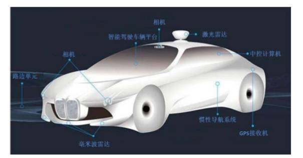 可用于智能驾驶环境感知的硬件设备有很多,主要包括相机、激 光雷达、毫米波雷达、超声波雷达、GPS、BDS、INS 等,目前智能 车上采用的配置方案往往是多种型号或多种类型设备的组合,如图 2- 1 所示。