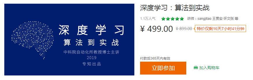 专知《深度学习: 算法到实战》课程