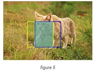 为了理解这一点,我们在(5,5)处输出一个块。图中显示了该块相对于类别猫的程度(洋红色)。我们可以看到对象稍微偏离了方框。方框并不完全包括猫,但有一个较大的重叠。