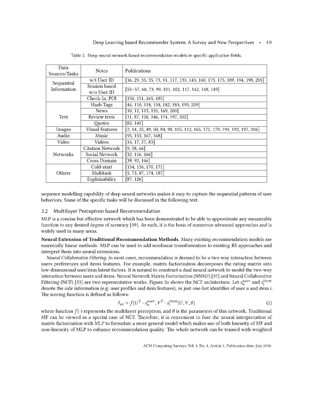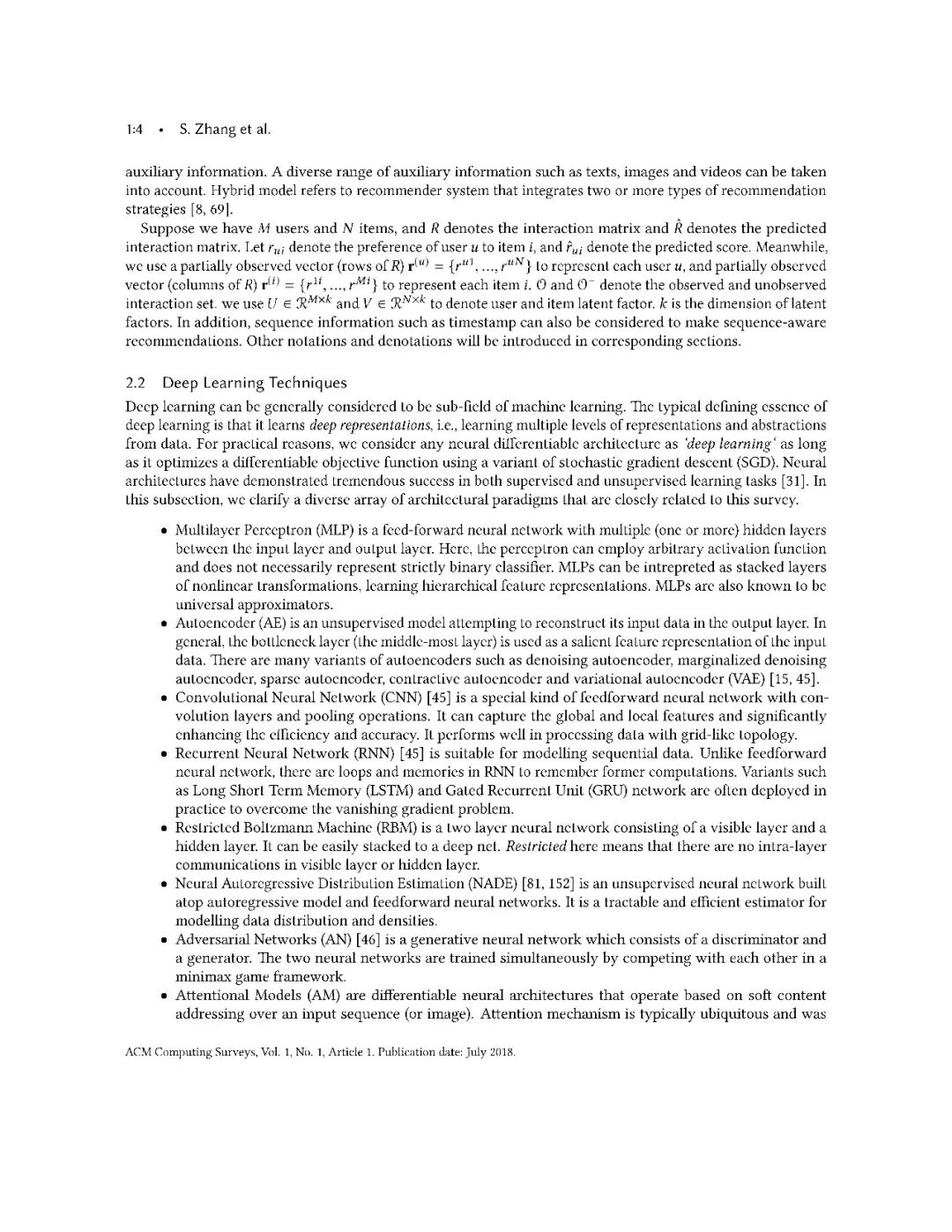 推荐系统模型主要分为三个大类:基于协同过滤、基于内容和混合模型。推荐系统要完成的任务也可以分为三类:评分(rarting)、排名(ranking)、分类(classification)。深度学习相关技术用于推荐系统的包括: