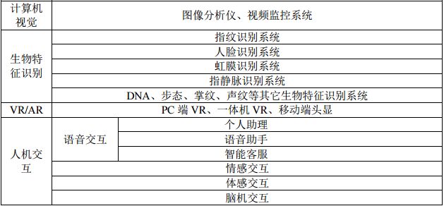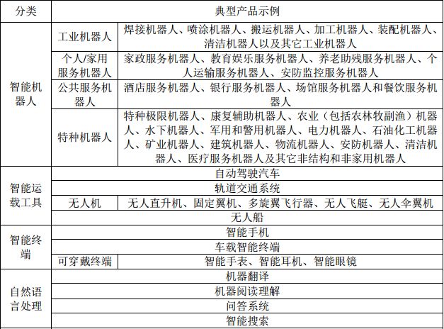 智能产品是指将人工智能领域的技术成果集成化、产品化,具体的分类如表 1 所示。