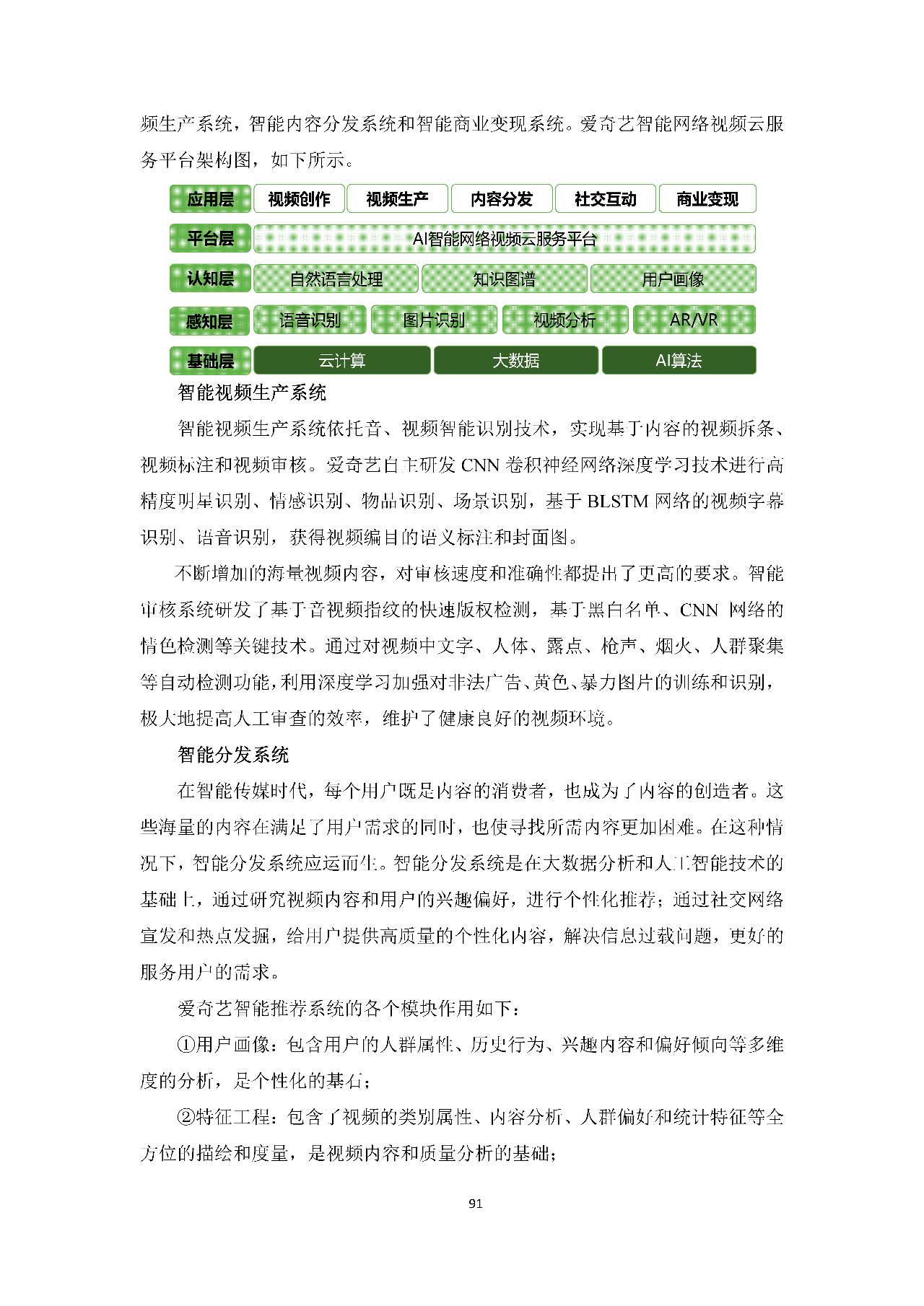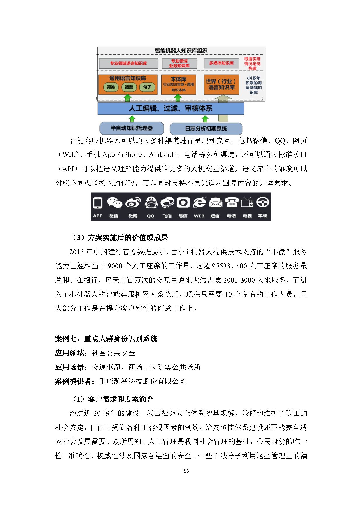 (3)提供人工智能在线服务。此类厂商一般为传统的云服务提供厂商,主 要依托其已有的云计算和大数据应用的用户资源,聚集用户的需求和行业属性, 为客户提供多类型的人工智能服务;从各类模型算法和计算框架的 API 等特定 应用平台到特定行业的整体解决方案等,进一步吸引大量的用户使用,从而进一 步完善其提供的人工智能服务。此类厂商主要提供相对通用的人工智能服务,同 时也会关注一些重点行业和领域。