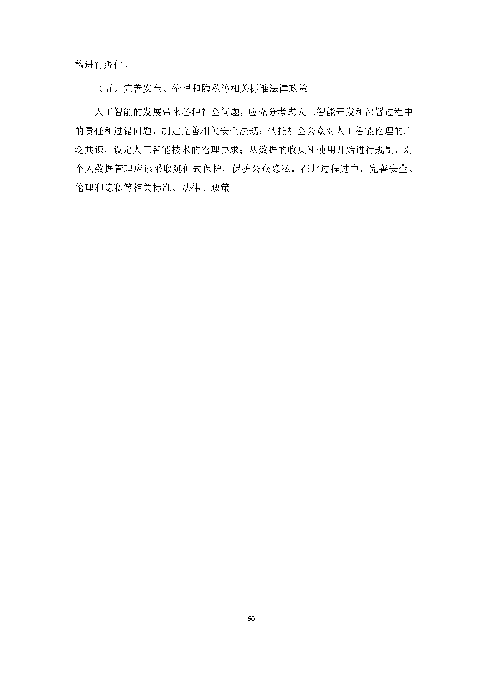 人工智能作为一项引领未来的战略技术,世界发达国家纷纷在新一轮国际竞 争中争取掌握主导权,围绕人工智能出台规划和政策,对人工智能核心技术、顶 尖人才、标准规范等进行部署,加快促进人工智能技术和产业发展。主要科技企 业不断加大资金和人力投入,抢占人工智能发展制高点。2017 年,我国出台了 《新一代人工智能发展规划》(国发〔2017〕35 号)、《促进新一代人工智能产业 发展三年行动计划(2018-2020 年)》(工信部科〔2017〕315 号)等政策文件, 推动人工智能技术研发和产业化发展。目前,国内人工智能发展已具备一定的技 术和产业基础,在芯片、数据、平台、应用等领域集聚了一批人工智能企业,在 部分方向取得阶段性成果并向市场化发展。例如,人工智能在金融、安防、客服 等行业领域已实现应用,在特定任务中语义识别、语音识别、人脸识别、图像识 别技术的精度和效率已远超人工。