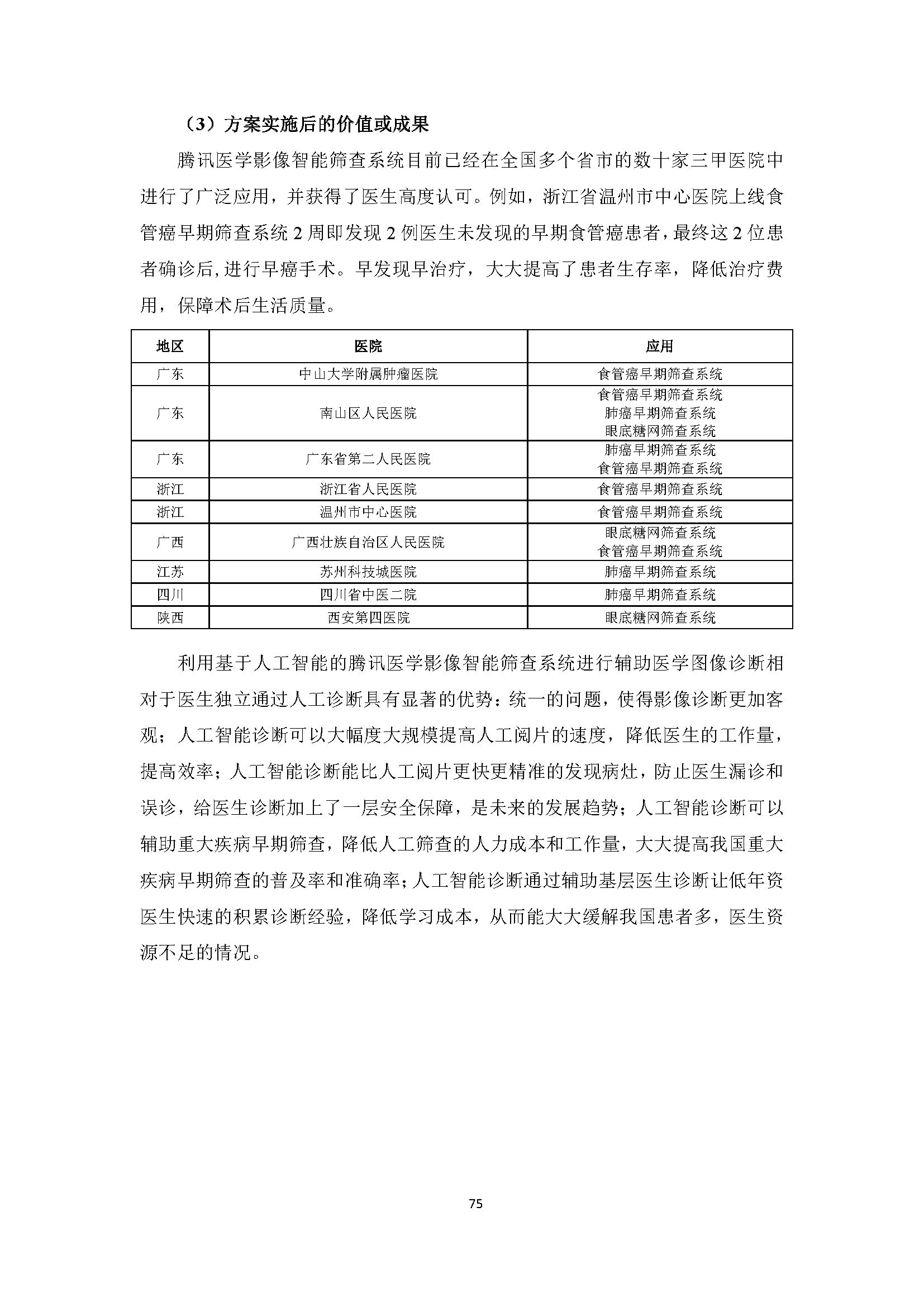 在辅助诊疗方面,通过人工智能技术可以有效提高医护人员工作效率,提升 一线全科医生的诊断治疗水平。如利用智能语音技术可以实现电子病历的智能语 音录入;利用智能影像识别技术,可以实现医学图像自动读片;利用智能技术和 大数据平台,构建辅助诊疗系统。