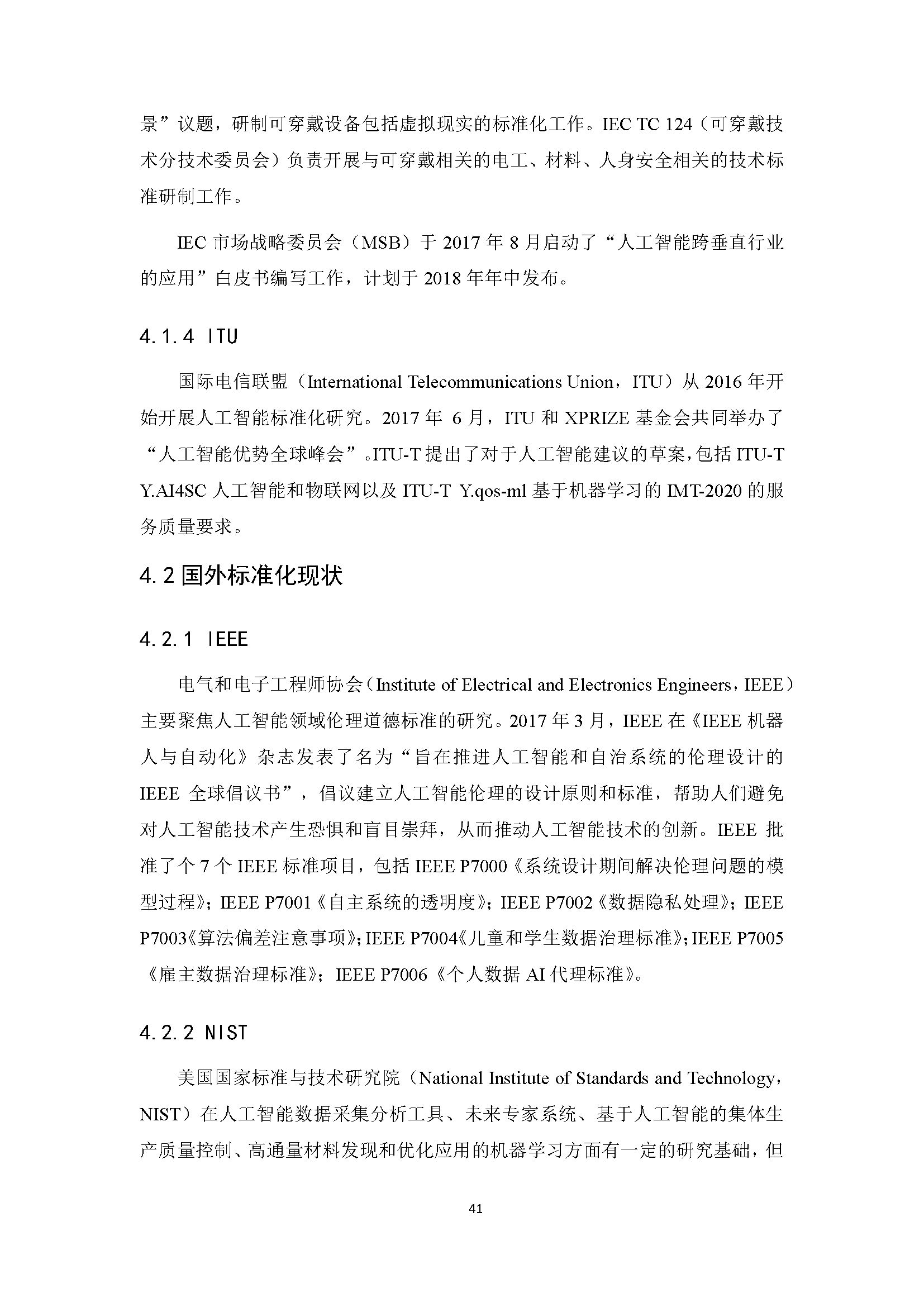 美国、欧盟、日本等发达国家高度重视人工智能标准化工作。美国发布的《国 家人工智能研究与发展策略规划》,欧盟发布的“人脑计划”,日本实施的“人工 智能/大数据/物联网/网络安全综合项目”,均提出围绕核心技术、顶尖人才、标 准规范等强化部署,力图抢占新一轮科技主导权。 我国高度重视人工智能标准化工作。在国务院《新一代人工智能发展规划》中将人工智能标准化作为重要支撑保障,提出要“加强人工智能标准框架体系研 究。坚持安全性、可用性、互操作性、可追溯性原则,逐步建立并完善人工智能 基础共性、互联互通、行业应用、网络安全、隐私保护等技术标准。加快推动无 人驾驶、服务机器人等细分应用领域的行业协会和联盟制定相关标准”。工信部 在《促进新一代人工智能产业发展三年行动计划(2018-2020 年)》中指出,要建 设人工智能产业标准规范体系,建立并完善基础共性、互联互通、安全隐私、行 业应用等技术标准;同时构建人工智能产品评估评测体系。