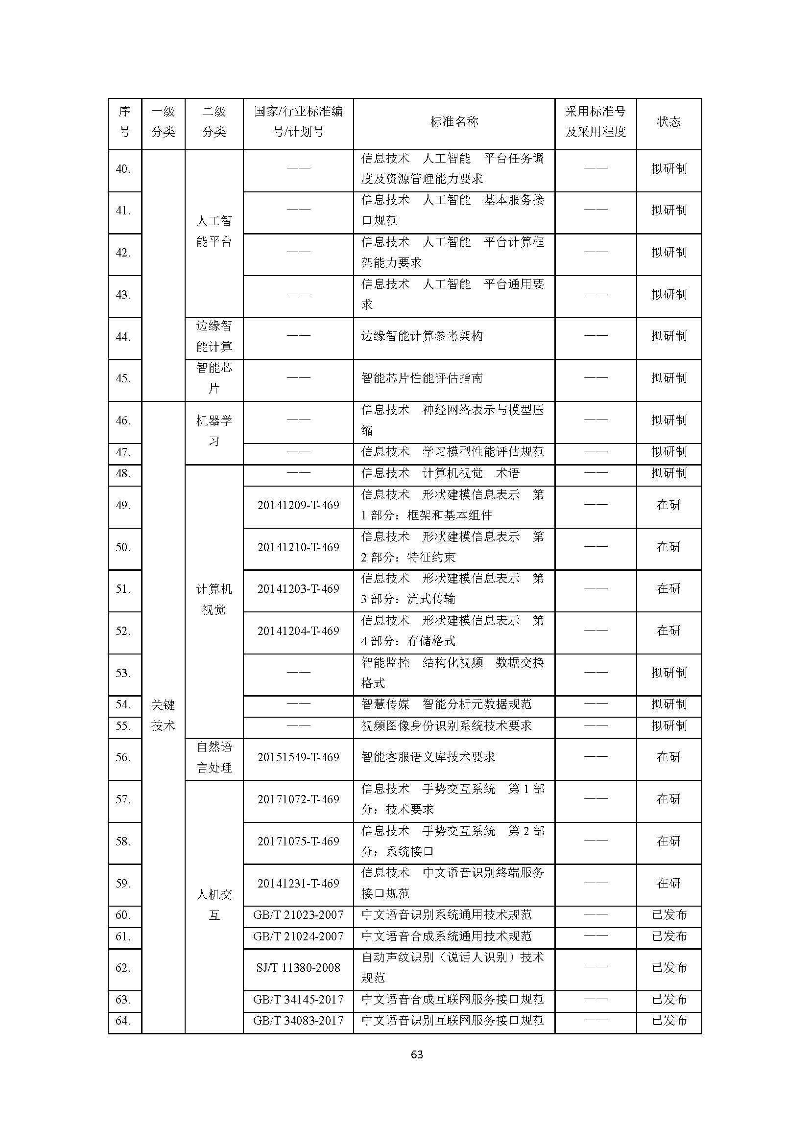 (一)标准化工作有利于加快人工智能技术创新和成果转化。现阶段人工智 能技术发展迅速,市场上逐步出现了可规模化、可商业化的产品和应用,需要以 标准化的手段固化技术成果,实现快速创新推广;