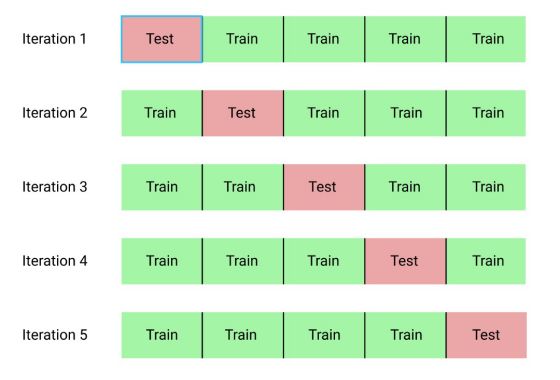 • 交叉验证(Cross Validation)是我们用来评估所选超参数组合的技术。 我们使用K折交叉验证,而不是将训练集分成单独的训练集和验证集,这会减少我们可以使用的训练数据量。交叉验证涉及到将训练数据分成K个folds,然后经历一个迭代过程,在这个迭代过程中,我们首先训练前K-1个folds的数据,然后在第K个fold的数据上进行评估表现。我们重复这个过程K次,在K-fold交叉验证结束时,我们将每个K次迭代的平均误差作为最终的性能度量。