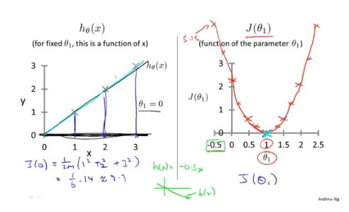 时的代价函数值,并在上图右半部分画出图像,可知在