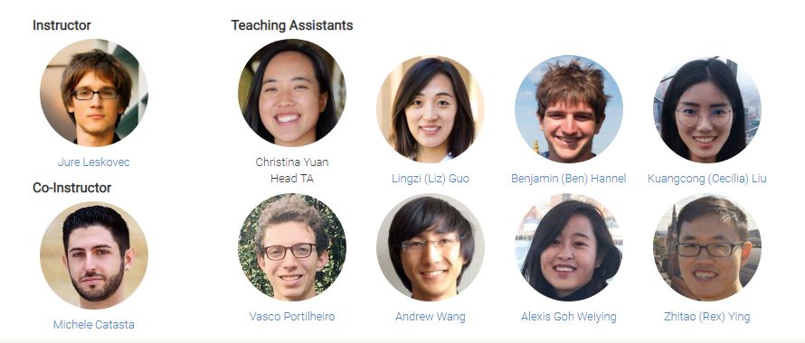 主讲人是图网络领域的大牛Jure Leskovec,是斯坦福大学计算机学院的副教授,也是图表示学习方法 node2vec 和 GraphSAGE 作者之一。在谷歌学术搜索(Google Scholar)上,Jure拥有接近4.5万的论文引用数量,H指数为84。