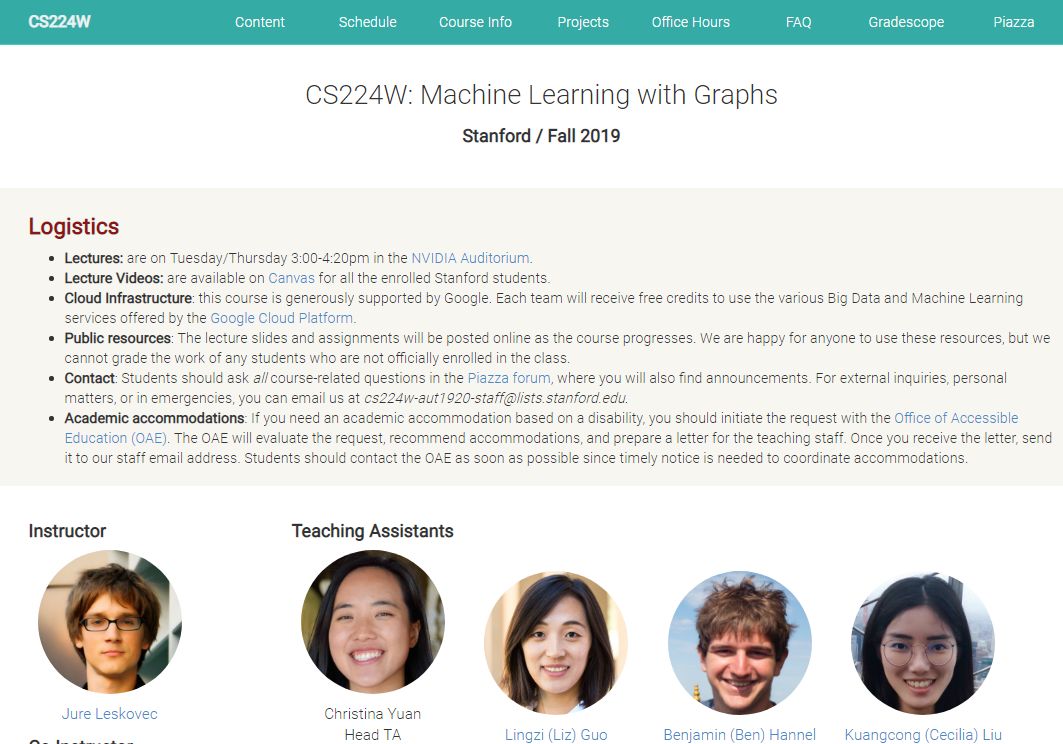 近年来,图神经网络(GNN)成为网络表示学习和分析的热点研究问题,其特点是将以神经网络为代表深度学习技术用于网络结构的建模与计算。图神经网络能够考虑网络中的节点、边及其附带的标签、属性和文本等信息,能够更好地利用网络结构进行精细建模和深度推理,已经被广泛用于自然语言处理、社会网络分析、推荐系统等领域。这个课程应该是近年来第一次全面总结图机器学习相关的课程,课程设置非常新颖也非常全面,包括近年来火热的图神经网络的局限和应用等等,课程全部的PPT 也已经放到网页上,希望做这方面研究的童鞋多多学习!